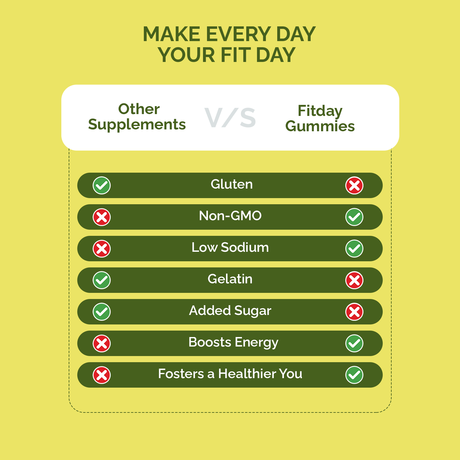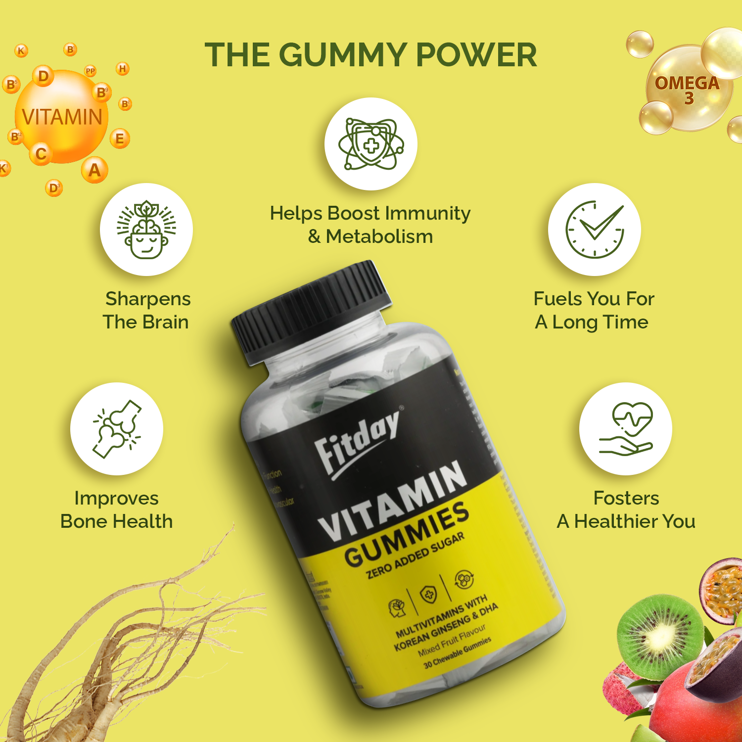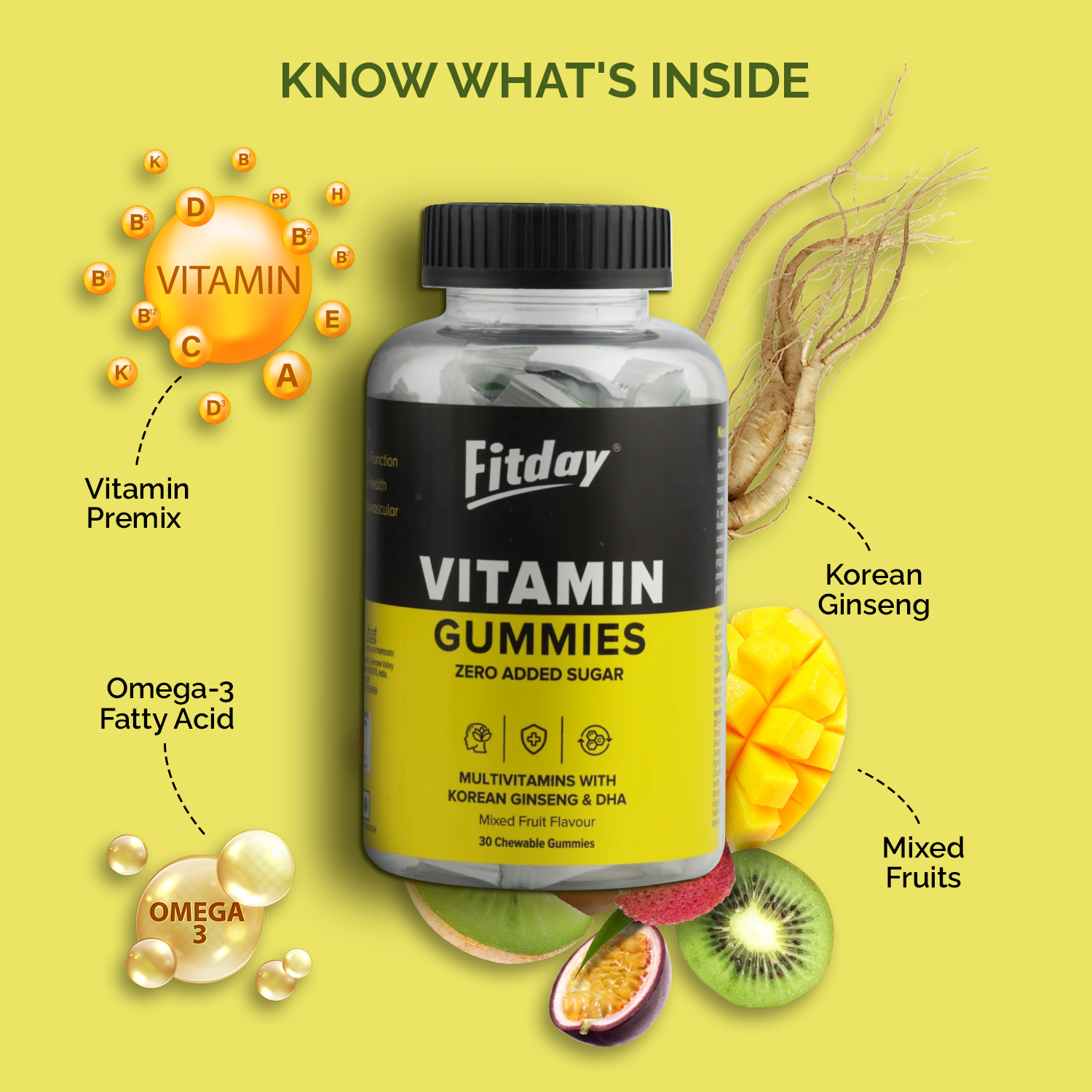 In the present era, balancing a chaotic life with nutritious meals is like juggling flaming swords. That’s why Fitday offers a nutrition boost with these multivitamin gummies, packed with key nutrients, omega-3 fatty acids, and Korean ginseng to strengthen your bones and support your overall wellness. Take charge of your health with a delicious daily dose of nourishment.