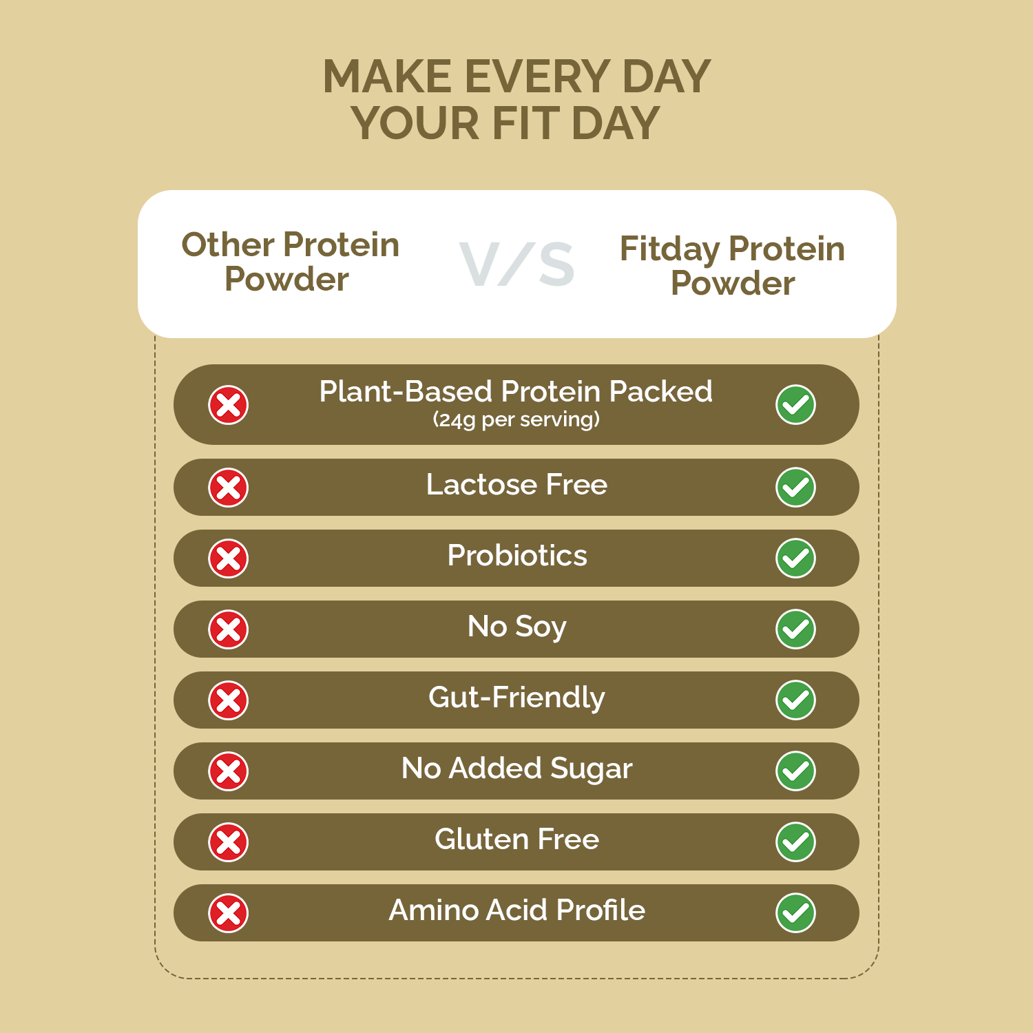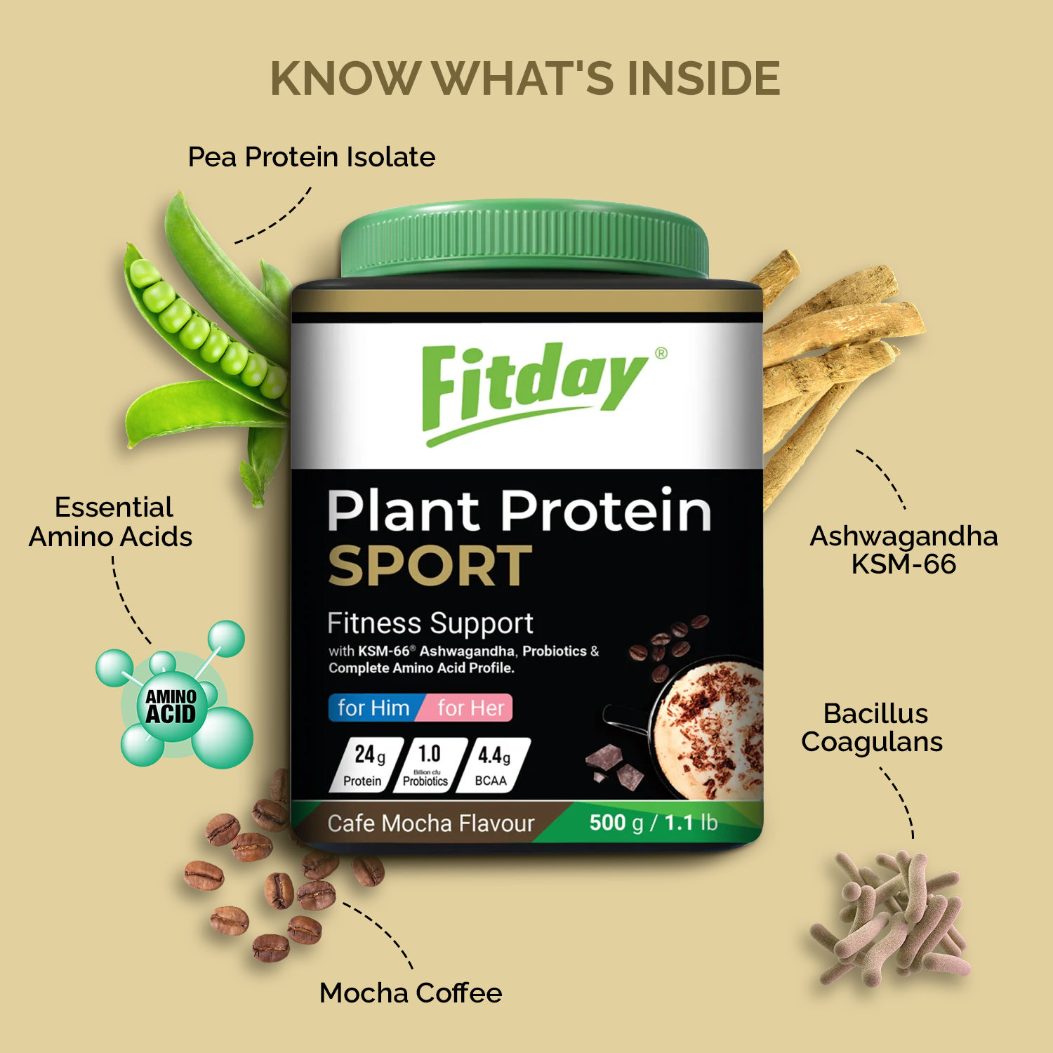 Imagine a swirl of mocha magic, blending into a silky-smooth delight that’s as tasty as it is nutritious. Already drooling, right? Fitday Plant Protein Powder is packed with all the goodness to satisfy your heart as well as your body’s cravings. Jazz up your health game with a protein powder that isn’t just a supplement—it’s your ticket to a delicious, energy-boosting fest.