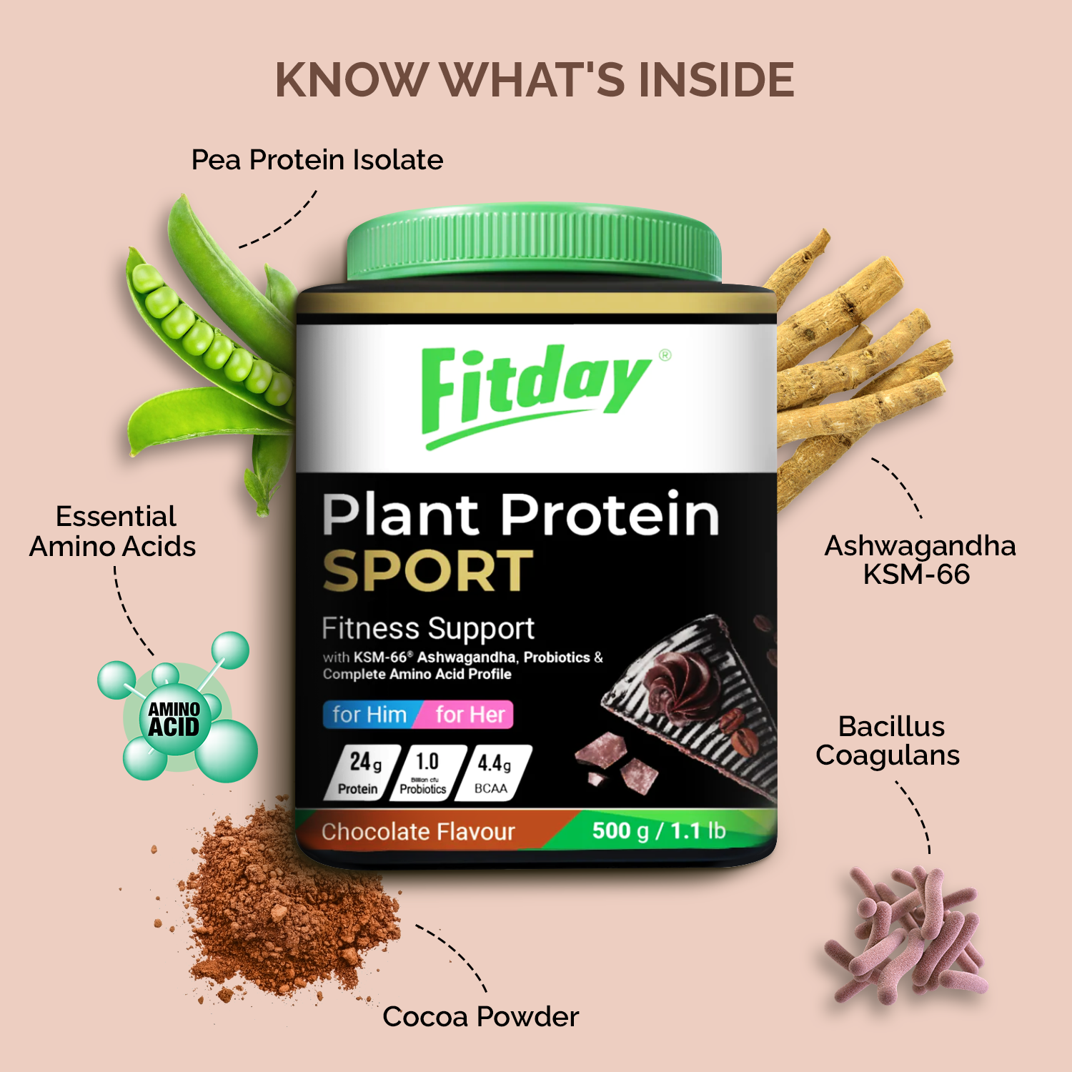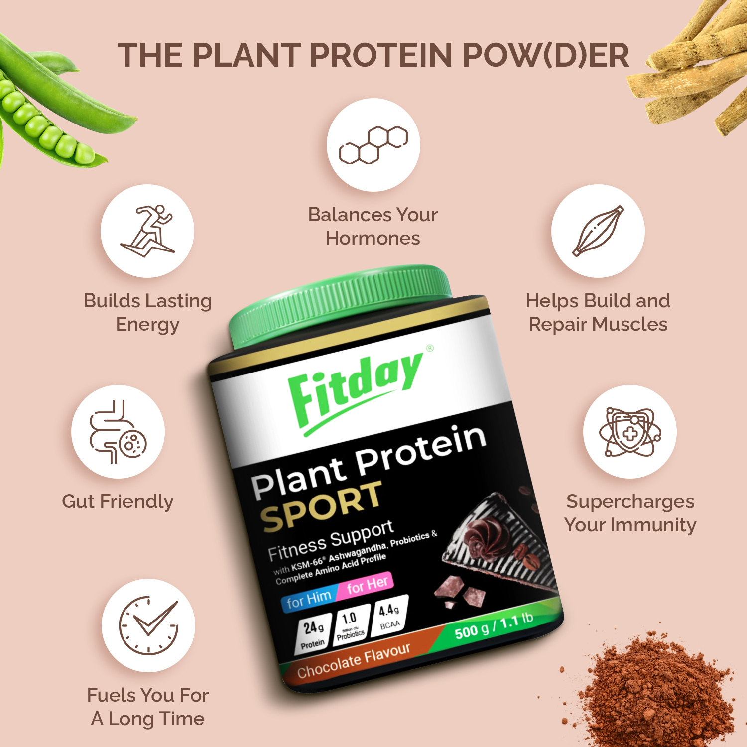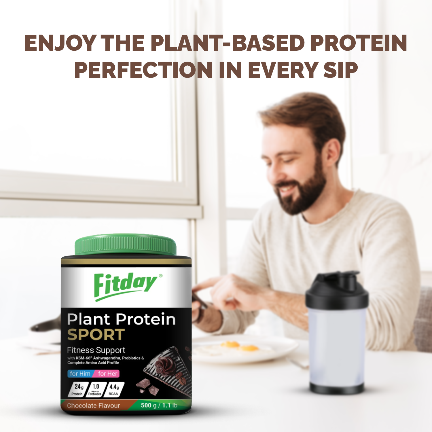 You can consume a tasty scoop of Fitday’s Plant Protein Sport Powder pre and post-workout.